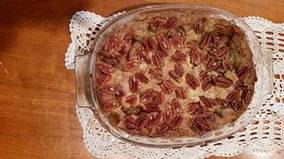 Add pecans, cut small slices of butter and place several over the top