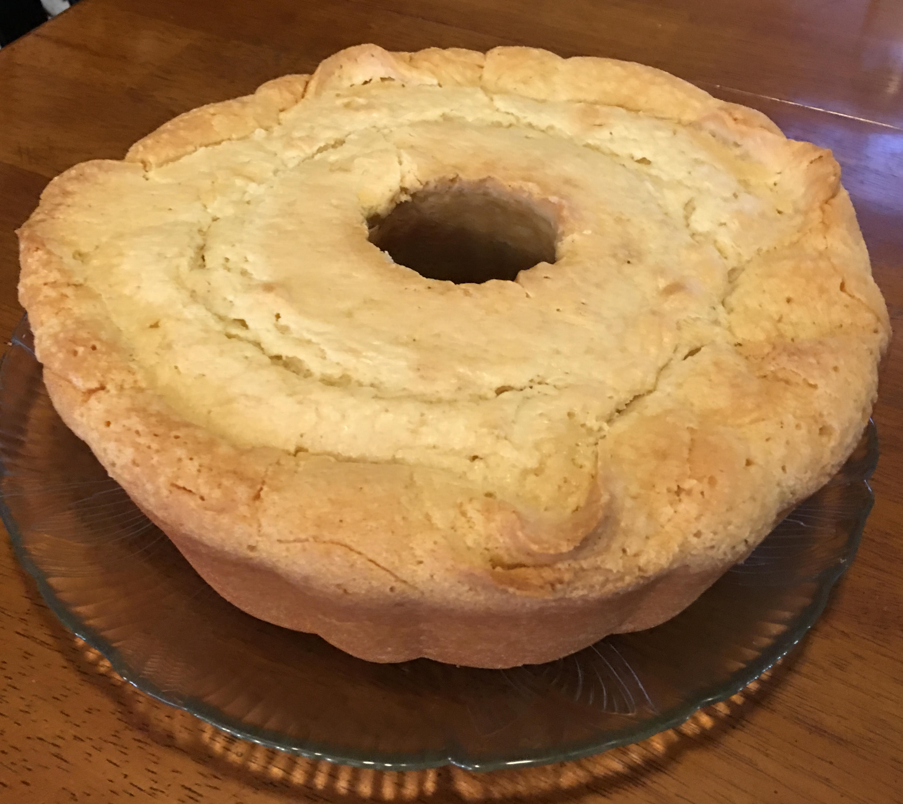 Fold in sour cream as you would beaten egg whites. Add flavorings. Bake at 275 for 1 ½ hours. i personally bake the cake at 300 degrees as it doesn't seem to get quite done at 275. It might just be my oven.